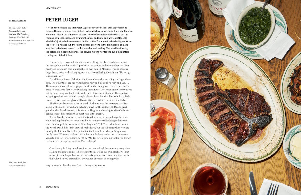 From New York’s Peter Luger to Bern’s in Tampa, from shrimp cocktails to creamed spinach, the book covers the classics—but its real focus is on people and place: what makes each steakhouse unique, and what binds them together across regions and eras.