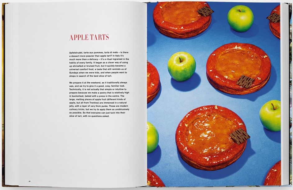 Here, however, technical authority is paired with visual playfulness. More than fifty recipes, rooted in Italian tradition but willing to stretch it, appear alongside surreal, color saturated imagery. Dishes such as spaghetti with barbecued fish and tomato and ginger sauce, veal marrow with smoked almonds, and even chocolate and lardo soufflés suggest a kitchen that treats tradition as foundation rather than boundary.
