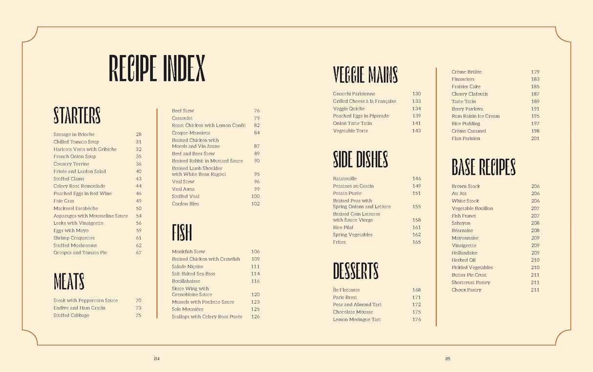 The book is structured with suggested menus for each day of the week, and includes a basics section covering sauces, stocks, and pâtés. Designed more as a keepsake than a deep dive, this is a cookbook that celebrates the enduring appeal of brasserie fare—unpretentious, satisfying, and made for full tables.