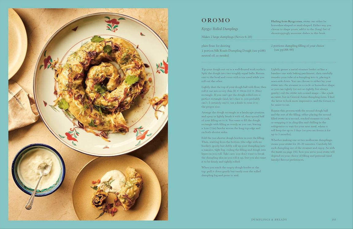 The repertoire is both traditional and refreshingly uncommon: Uyghur cumin tofu; a Bukharan rice dish with risotto-like texture; Kyrgyz rolled dumplings (oromo), alongside dill-laced noodles, sharbats, and more. Ansari’s step-by-step detail helps cooks who haven’t trained locally assemble dishes with confidence.